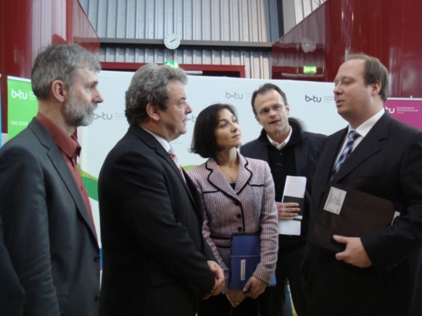 Begrüßt wurden die Parlamentarischen Staatssekretäre durch den Vizepräsidenten der BTU Cottbus, Herrn Prof. Dr. Dieter Schmeißer.