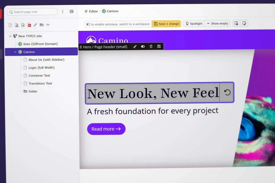 Last weekend at Web Camp Venlo, developer Matthias Vogel demonstrated how the default Camino theme supports visual editing in TYPO3 v14. I believe this is a quantum leap for our CMS, both in terms of usability and for its appeal to potential clients.