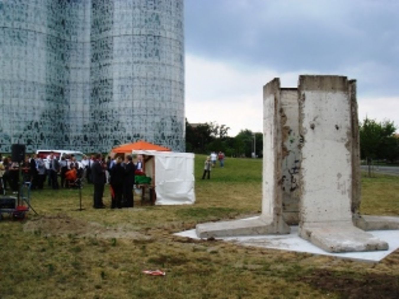 Neben der Einweihung des Platzes der Deutschen Einheit und der Enthüllung des neuen Straßenschildes fand zuvor die Enthüllung des Mauerdenkmals auf dem Hügel des Informations-, Kommunikations- und Medienzentrum (IKMZ) der Brandenburgischen Technischen Universität Cottbus statt. Vor der Universitätsbibliothek stehen seit gestern vier Berliner Mauer-Elemente. Die vier 3,60 Meter hohen und 2,7 Tonnen schweren Stahlbetonfertigteile waren als vorderes Sperrelement Bestandteil der Berliner Grenzanlagen.