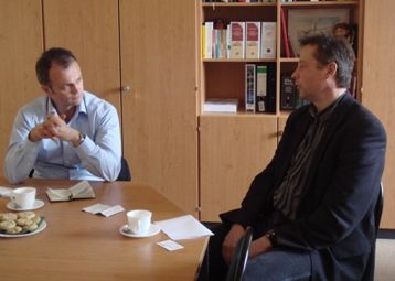 Foto: Prof. Dr. Michael Schierack MdL im Gespräch mit dem Schulleiter der Paul-Werner-Oberschule Herrn Paulenz (v.l.)