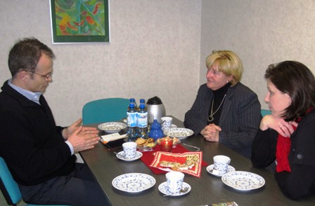 Anschließend ging es dann ins Humboldt-Gymnasium Cottbus. Neben der Schulleiterin Frau Ingrid Fritz nahm auch Elternsprecherin Christina Gerth an dem gemeinsamen Gespräch mit dem Landtagsabgeordneten teil. Die Schulleiterin stellte kurz das bilinguale Unterrichtsmodell vor, welches das Humboldt-Gymnasium seinen Schülern seit 1998 anbietet. Das heißt, ab Jahrgangsstufe 7 wird die Fremdsprache Englisch als Arbeitssprache im Sachfachunterricht in Geografie und in Geschichte verwendet. Das Ziel dieses Angebotes ist das Erlernen einer hohen berufsqualifizierenden Fremdsprachenkompetenz. Außerdem wurde über die Chancen und Möglichkeiten, die ein Auslandssemester mit sich bringt, gesprochen. Die Schule praktiziert bereits einen gegenseitigen Schüleraustausch mit Polen und strebt diesen auch in Zukunft weiterhin an.
