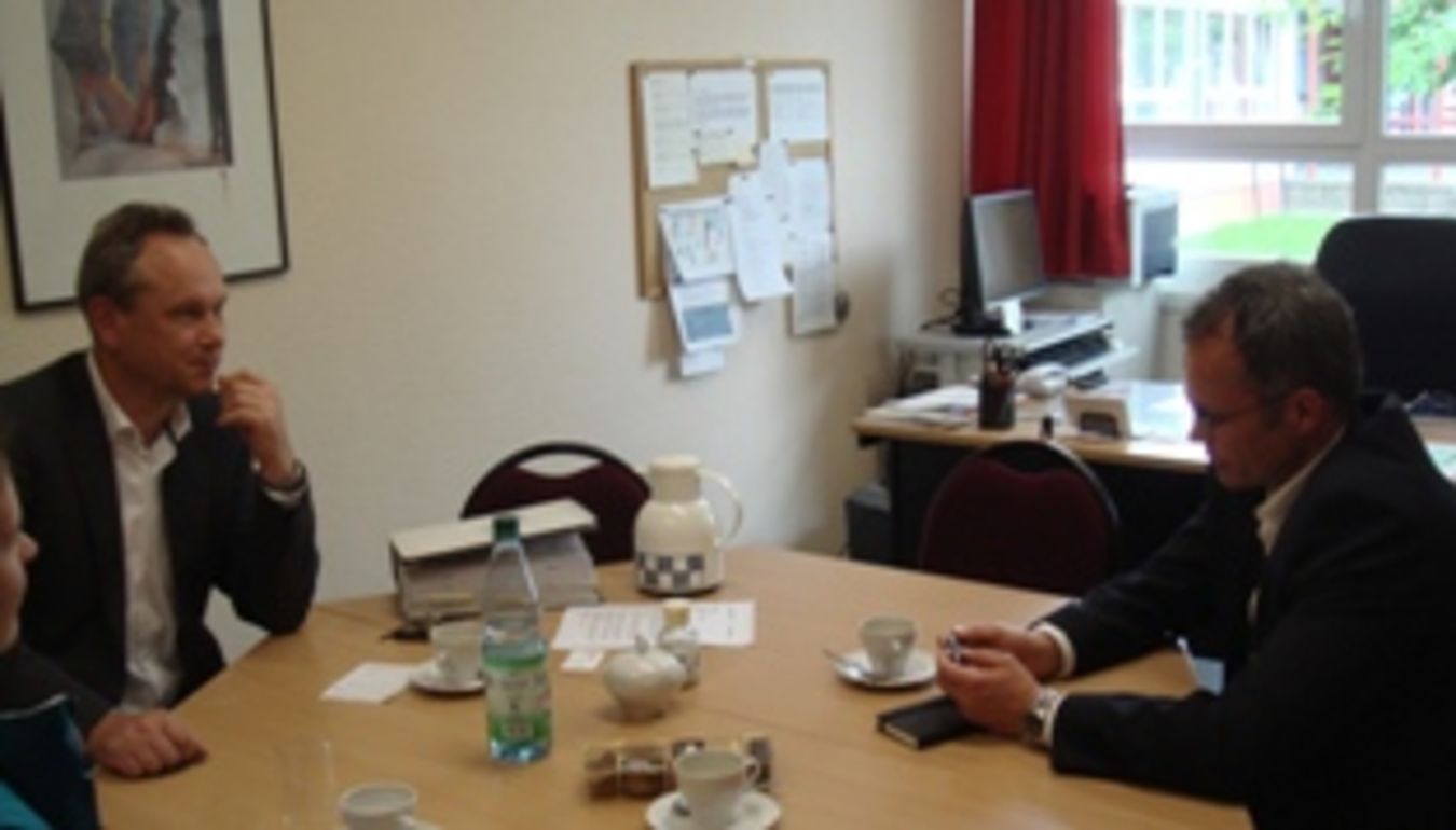 Der Landtagsabgeordnete Prof. Dr. Michael Schierack besuchte am Mittwoch, den 04.05.2011, die Theodor-Fontane-Schule in Cottbus. An der Gesamtschule mit gymnasialer Oberstufe lernen zurzeit ca. 690 Schülerinnen und Schüler, die von 69 Lehrerinnen und Lehrern unterrichtet werden. In dem Gespräch mit dem Landtagsabgeordneten ging es unter anderem um das integrative Schulkonzept und der Schulleiter Herr Leesch erläuterte die Möglichkeiten eines binnendifferenzierten Unterrichts.