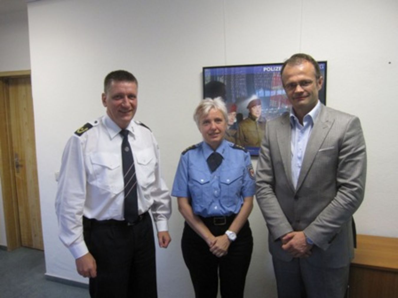 Foto: Michael Schierack neben der stellv. Leiterin der Polizeidirektion Süd Simone Taubeneck und dem neuen Leiter Sven Bogacz. (v.r.)