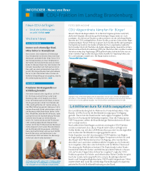 mit unserem INFOTICKER erhalten Sie heute die neuesten Nachrichten über die Arbeit der CDU-Fraktion im Landtag Brandenburg. Wir wünschen Ihnen eine angenehme Lektürezeit.