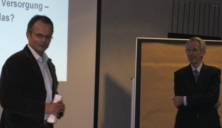 Prof. Dr. Michael Schierack beim gesundheitspolitischen Arbeitskreis am 24.11.2010. Er freute sich sehr, an diesem Tag den Präsidenten der Bundesärztekammer, Herrn Prof. Dr. Jörg-Dietrich Hoppe, als Gastredner und Diskussionspartner begrüßen zu können. Das Vortragsthema von Prof. Dr. Hoppe lautete: „Priorisierung in der medizinischen Versorgung – Was bedeutet das?“.